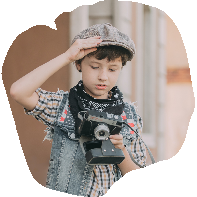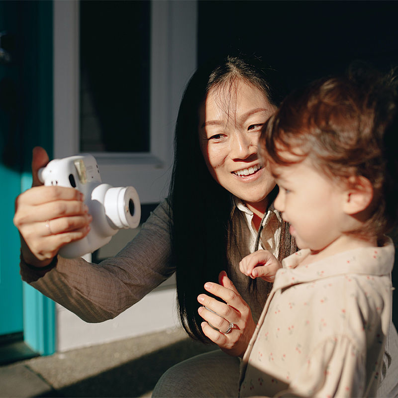 Hast du schon einmal eine*n richtige*n Fotograf*in gesehen? Vor allem wenn sie Menschen fotografieren, machen Fotograf*innen ganz viele Bilder. Fotografiere immer mehrere Bilder und wähle später das beste aus. Auch Serienaufnahmen sind eine tolle Möglichkeit, Bewegungen einzufangen. Probier’s doch selbst einmal aus!